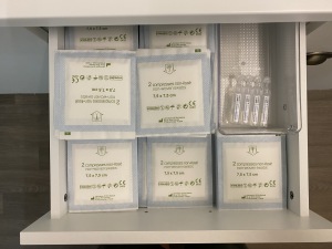 Maintenant je peux ouvrir tout le matériel sans le toucher et en le laissant posé sur son papier stérile.
